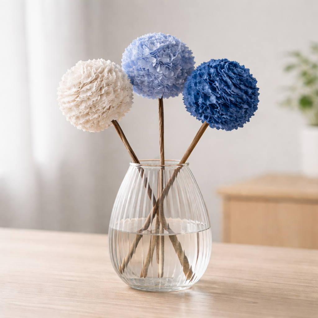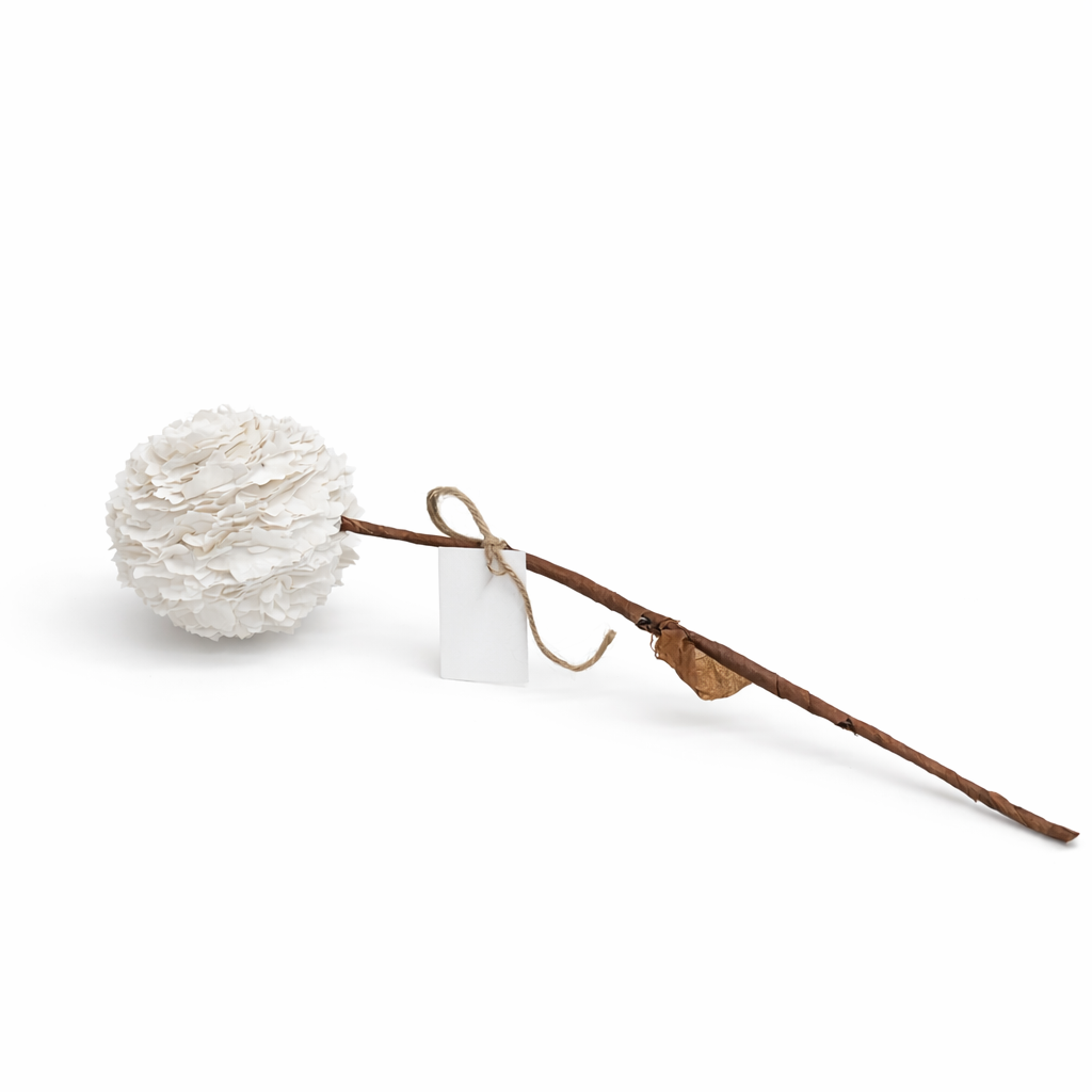 Hortenzija je ročno narejen Katkin dekorativni izdelek, ki združuje naravno lepoto in umetniško domišljijo. Cvet je izdelan iz skrbno oblikovanih kavnih filtrov, pritrjenih z majhnimi risalnimi žebljički, kar ustvarja realističen videz nežnih cvetnih listov. Vsaka hortenzija ima naravno steblo, ki poudari njeno pristnost in eleganco.