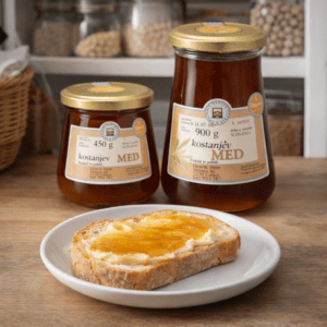 Kostanjev med je značilen po svoji temni barvi, rahlo grenki aromi in bogatem, izrazitem okusu. Pridelan je iz cvetov pravega kostanja, ki raste v neokrnjeni naravi laškega območja. Ta med je znan po višji vsebnosti mineralov in antioksidantov, zato ga pogosto cenijo tudi zaradi njegovih blagodejnih učinkov. Odlično se poda k siru, oreščkom ali kot sladilo za tople napitke. Na voljo je v različnih količinah, lahko ga podarite kot darilo ali pa ga imate za vsakdanjo uporabo.